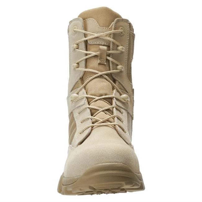 Kick it into gear with the Bates GX-8 Desert CT SZ. These boots boast cement construction and a combination of athletic shoe traits. While the boot is super lightweight, it also comes with all-terrain construction in the form of ankle cushioning, a padded collar and tongue, and a cushioned footbed to keep your feet supported and cool. The boot provides surefooted landing and propulsion on any surface with a slip-resistant outsole. Finally, the composite toe offers added foot protection without sacrificing mobility; plus, it’s 100 percent non-metallic, which means you can take it with you to the airport hassle free. With streamlined features and a high-mobility design, the GX-8 will help you focus more on the tasks you face out in the field every day.
