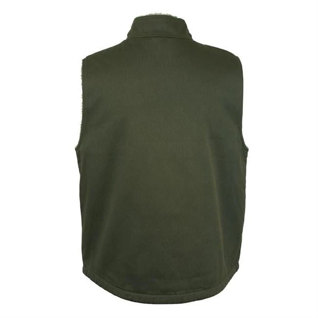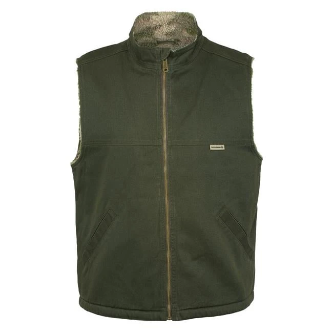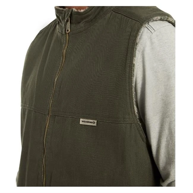 The Wolverine Upland Vest is made with a classic design and has the warmth you need to thrive in cold conditions. The outside of the vest is constructed with 100% cotton twill, and the inside is lined with warm, 100% polyester sherpa fleece. An internal chest pocket with a hook and loop closure protects small accessories, while two welt pockets on the front offer additional storage capabilities. The top of the collar features an internal wind flap with a self-fabric zipper for protection from the weather. Designed with a pigment print and enzyme washing for a clean appearance, this vest is a perfect layer for your cold weather gear.